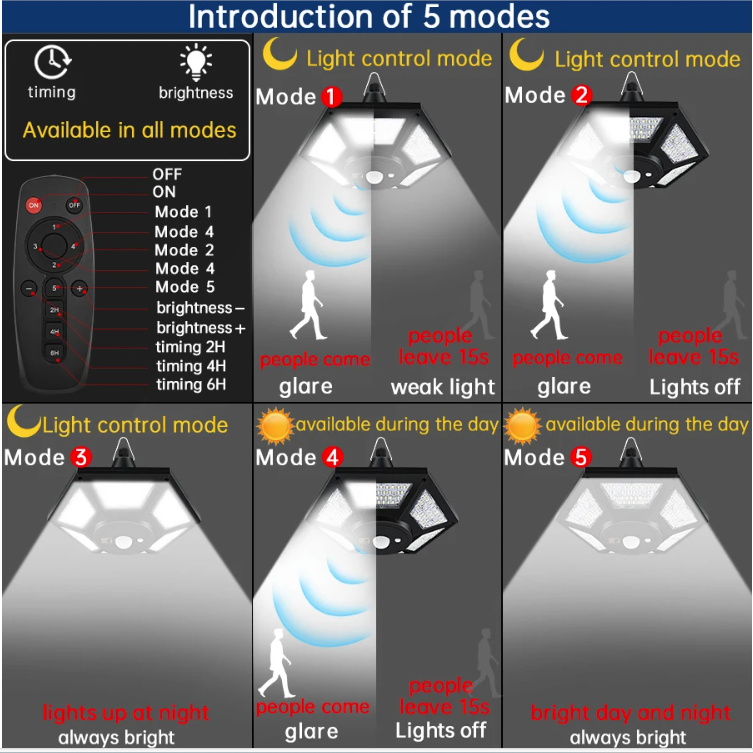 2. 3 modalitete dhe kohëmatës të natës Kjo dritë diellore për ambiente të brendshme me karakteristika të ndjeshmërisë së lartë të sensorit të lëvizjes