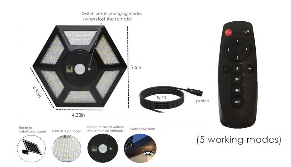 4.IP65 I papërshkueshëm nga uji dhe instalim i lehtë Paneli diellor dhe drita janë projektuar veçmas dhe lidhen me një tel 16,5 FT të gjatë.